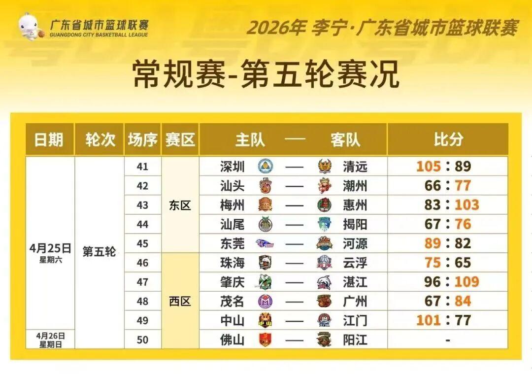 4月25日,粤BA常规赛第五轮的战火全面点燃,本轮赛事可谓是精彩纷呈、看点十足。深圳队与中山队这两支实力强劲的队伍,在之前的比赛中一路过关斩将,稳扎稳打,在本轮双双收获了五连胜的佳绩;备受瞩目的“潮汕德比”激情上演,潮州队与汕头队展开了一场激烈厮杀,最终潮州队力压汕头队,成功拿下这场德比大战;惠州队在面对梅州队时发挥出色,顺利击败对手,斩获了本赛季的首场胜利;东莞队则强势出击,成功击退河源队,持续保持着连胜的良好势头,整个联赛的竞争氛围愈发紧张激烈。