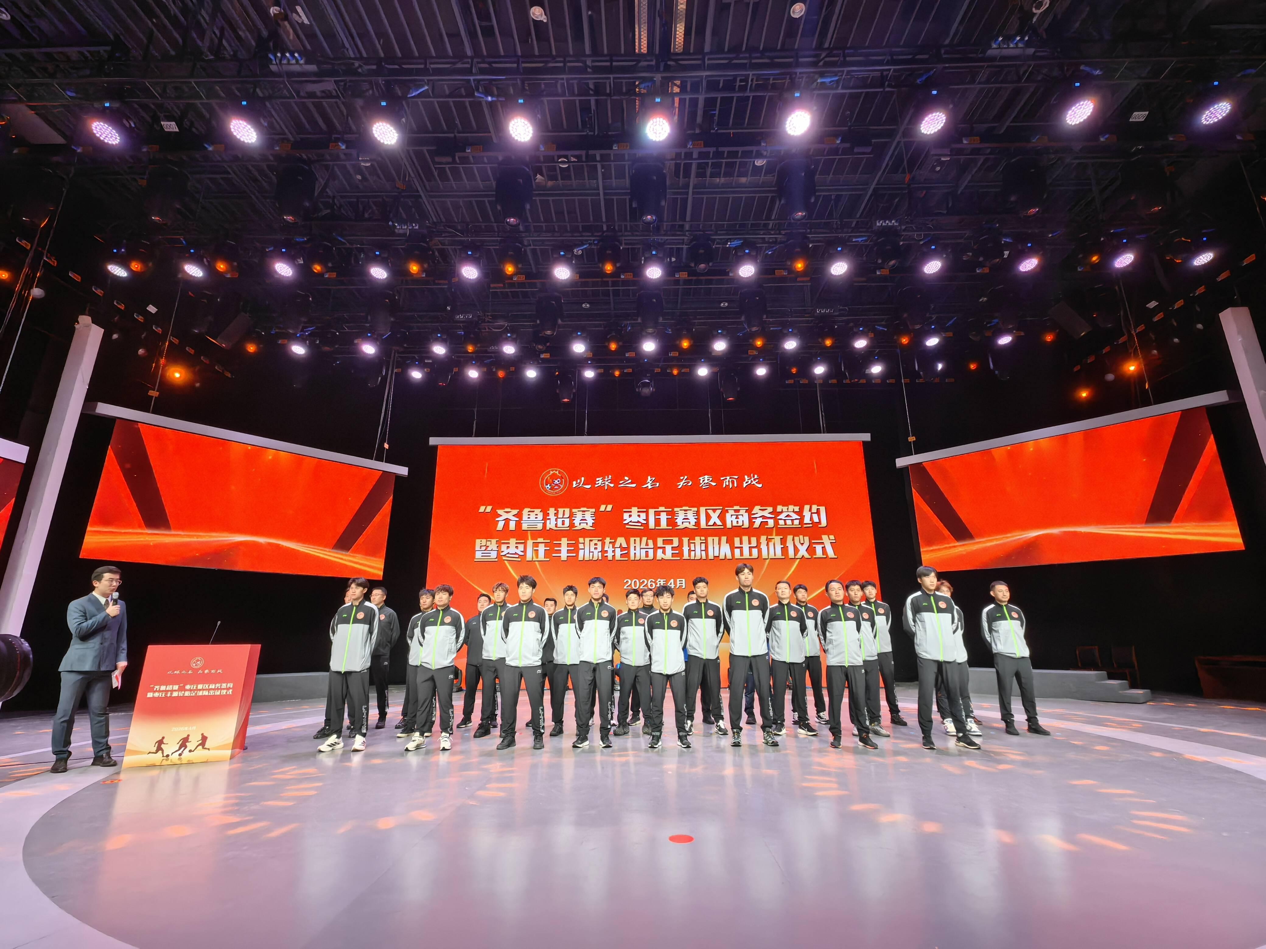徽声在线·闪电新闻4月25日讯 4月24日下午,2026年“齐鲁足球超级联赛”枣庄赛区商务合作签约仪式暨枣庄足球队出征壮行会在枣庄市新闻传媒中心800平方米演播厅隆重举行,标志着这座鲁南名城正式吹响足球赛事集结号。