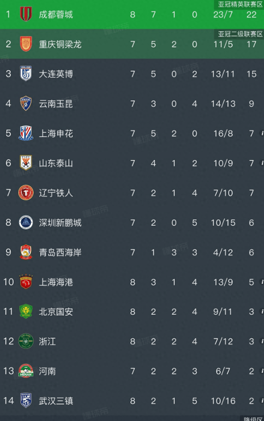 中超积分榜风云变幻,蓉城领跑津门虎爆冷,保级大战一触即发