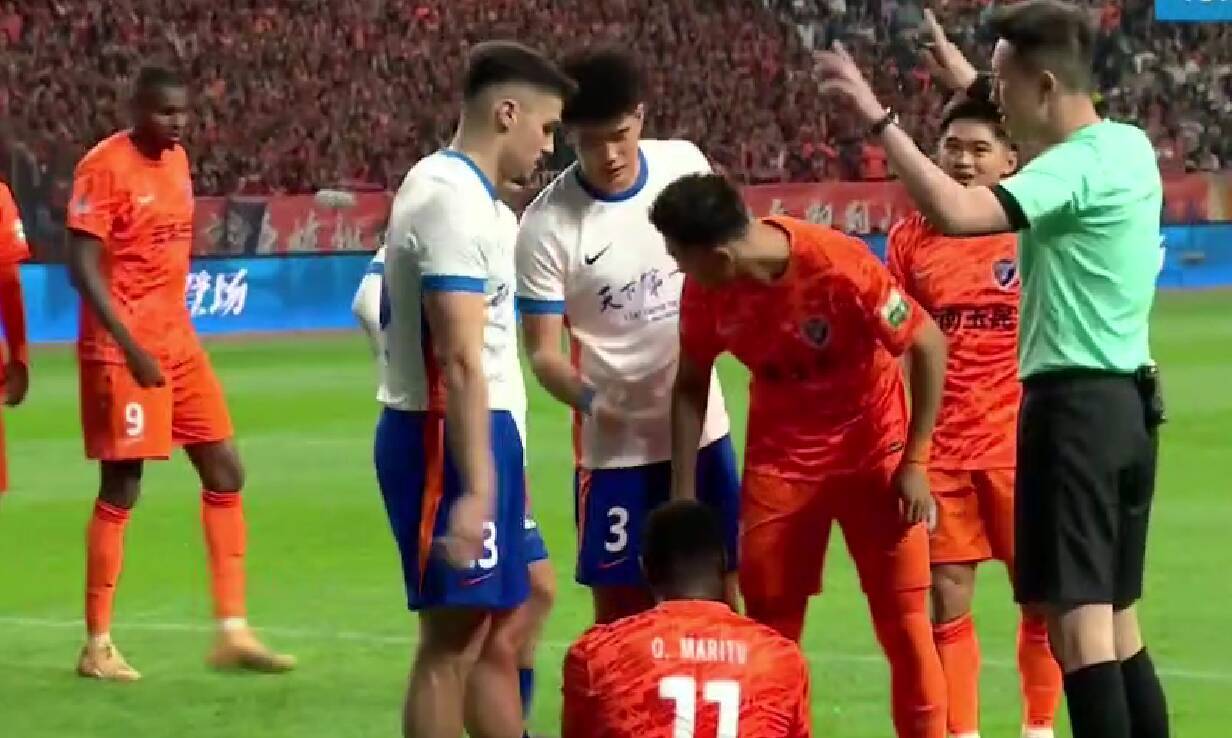 下半场易边再战,比赛进行到第83分钟,谢文能在与出击的鲍亚雄发生碰撞后,被裁判直接出示红牌罚下,山东泰山队陷入更加被动的局面。第88分钟,奥斯卡在禁区线上左侧做球,约尼查在禁区左侧小角度挑射破门,山东泰山队0-4落后,最终无力回天。