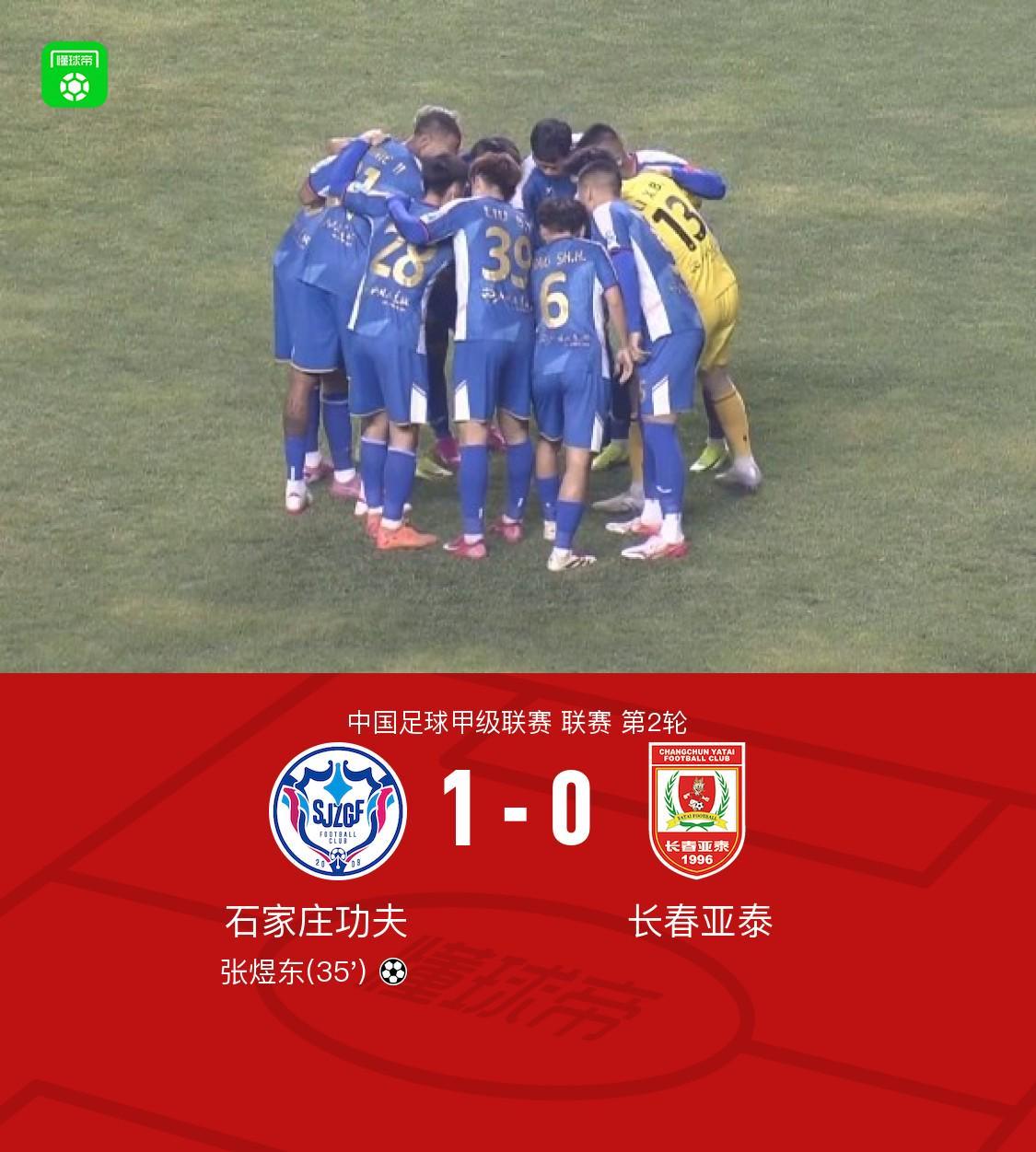 石家庄功夫1-0力克长春亚泰,张煜东破门成关键先生
