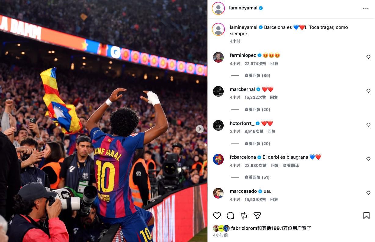 在加泰罗尼亚德比战硝烟散尽后,巴萨新星拉明·亚马尔通过个人社交平台发布动态,以极具冲击力的宣言庆祝红蓝军团的关键胜利,瞬间点燃网络舆论场。