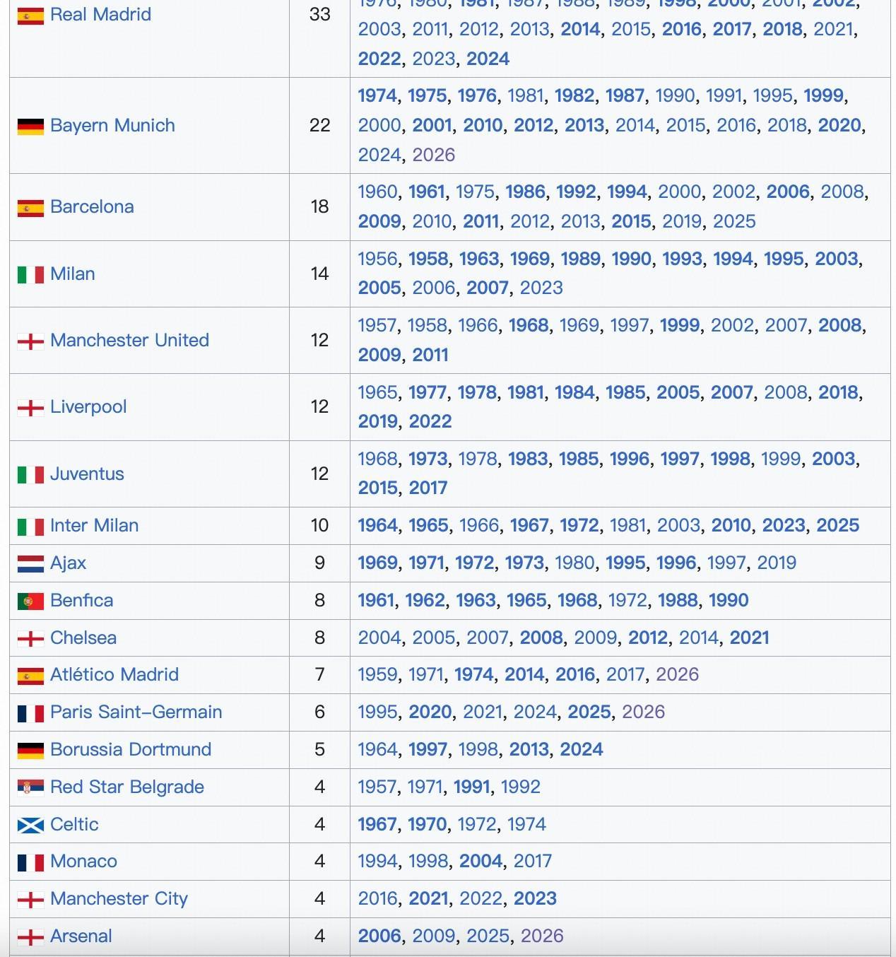 拜仁22次晋级欧冠四强创纪录,力压马竞巴黎阿森纳总和