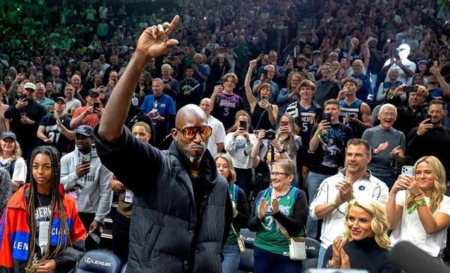 在森林狼与鹈鹕这场激烈比赛的场边,一位重量级嘉宾的现身吸引了所有人的目光,此人正是加内特。森林狼官方特意在现场大屏幕上打出欢迎标语,热烈迎接加内特的回归。要知道,这距离他上一次来到森林狼主场观赛,已经过去了漫长的8年。此前,由于与前老板格伦 - 泰勒关系紧张,加内特一度从公众视野中消失。如今,森林狼更换了老板,加内特不仅荣膺球队大使一职,他的21号球衣也即将迎来退役仪式,这无疑是对他在森林狼辉煌岁月的高度认可。