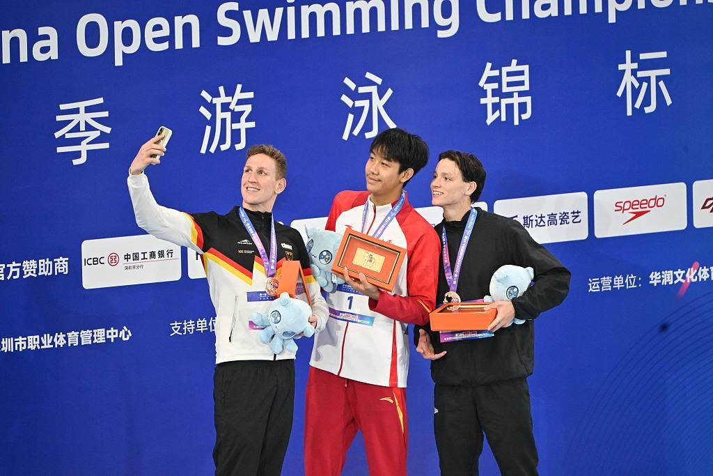 在中国游泳公开赛的赛场上,年仅18岁、身高达到1米98的新星张展硕再次成为焦点。他在男子200米自由泳决赛中,以惊人的1分44秒53的成绩刷新了自己的个人最佳,强势夺得冠军。这一成绩不仅让他力压群雄,还成功击败了德国名将卢卡斯·马滕斯(以1分45秒22摘得银牌)和澳大利亚名将威廉·佩特里克(以1分46秒14获得铜牌)。凭借这一出色表现,张展硕还收获了1万美元的冠军奖金,为自己的职业生涯增添了浓墨重彩的一笔。
