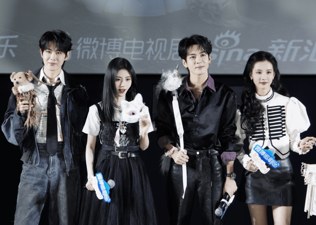 在互动环节,四位主演手持各自精心准备的道具登场,一同拍摄了多张合照,现场气氛热烈非凡。更令人惊喜的是,鞠婧祎与陈都灵还在现场还原了剧中姐妹“开大”的经典名场面,将剧情中的精彩瞬间再次呈现给观众,引得现场粉丝阵阵欢呼,气氛轻松愉快。