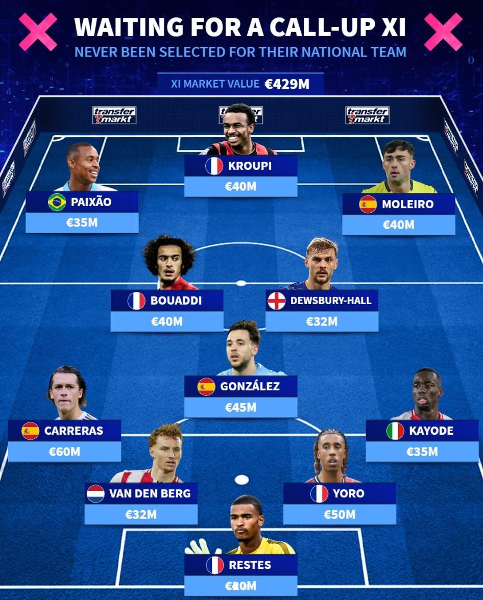 德转盘点未获国家队征召最贵11人:皇马新星6000万领衔