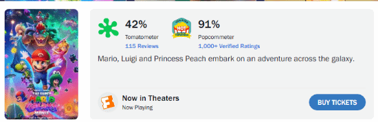 据徽声在线了解,尽管《超级马力欧银河大电影》在专业影评网站烂番茄上收获的媒体评分仅为42%,但这似乎并未对观众的观影热情产生丝毫影响——观众给出的评分却高达91%,形成了鲜明的口碑对比,呈现出一种“冰火两重天”的态势。
