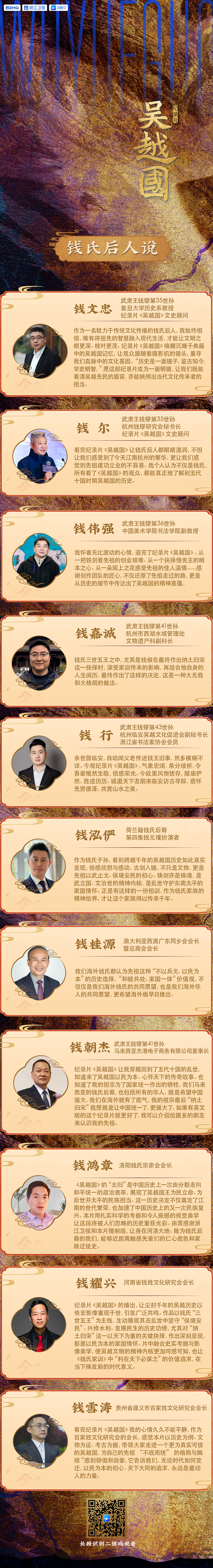 血脉相连,追溯千年历史长河。当纪录片的镜头缓缓揭开历史的神秘面纱,那些与吴越国历史紧密相连的人们,无疑会感受到最深刻的触动。由国家广播电视总局与中共浙江省委宣传部共同指导,浙江广播电视集团携手中共杭州市委宣传部、中共杭州市临安区委宣传部联合出品,浙江卫视精心承制的大型历史人文纪录片《吴越国》虽已圆满收官,但作为钱氏三世五王的后裔,他们对于这段历史的看法,以及这部纪录片如何以当代视角书写家族记忆,都值得我们深入聆听。让我们一同走进钱氏后人的内心世界,感受那份跨越时空的共鸣与家族传承的厚重。
