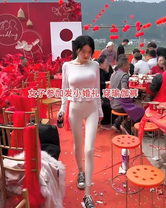 女子参加发小婚礼着装引争议,瑜伽裤亮相婚宴现场,网友热议不断