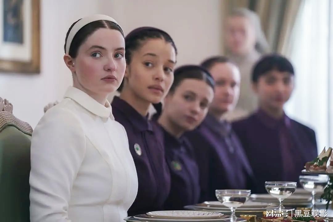 这一季的画风有了显著转变,不再是基列国那灰冷压抑的色调,而是融合了田园风的清新、哥特美的神秘以及青春残酷物语的冷峻。身着制服的少女们伫立在红墙之下,那画面美得令人心醉,却又让人不禁后背发凉……