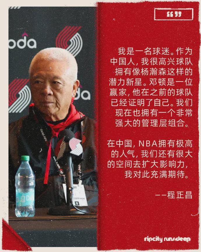 近日,波特兰开拓者队迎来了新老板邓顿,他主持召开了集团董事会。在投资团队中,熊猫快餐的联合创始人Andrew程正昌及其夫人Peggy显得格外引人注目,作为团队中最富有的成员,他们在发布会上特别提到了杨瀚森。Andrew程正昌表示:“身为中国人,看到球队中有杨瀚森这样极具潜力的新星,我感到非常高兴和自豪。”