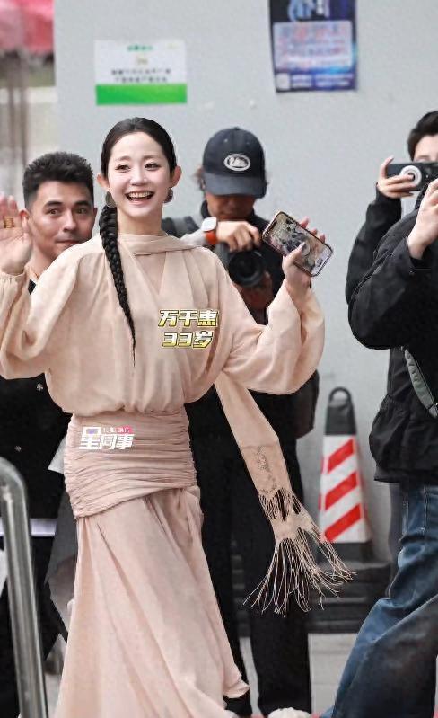 首先映入眼帘的是唐艺昕,她当日的造型走的是生活化路线。一条柔粉色的连身裙巧妙地勾勒出她的身形,肩头随意地搭着一条米白色的羊绒围巾,整个人散发出一种松弛感。
