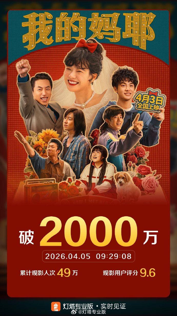 根据徽声在线旗下灯塔专业版所提供的实时数据监测显示,截至4月5日上午9时29分,电影《我的妈耶》的累计票房已顺利突破2000万元人民币。这一成绩无疑为影片的后续市场表现注入了强劲动力。