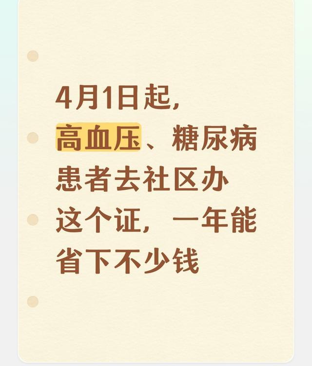 4月1日起,高血压、糖尿病患者社区办证,一年省下不少钱