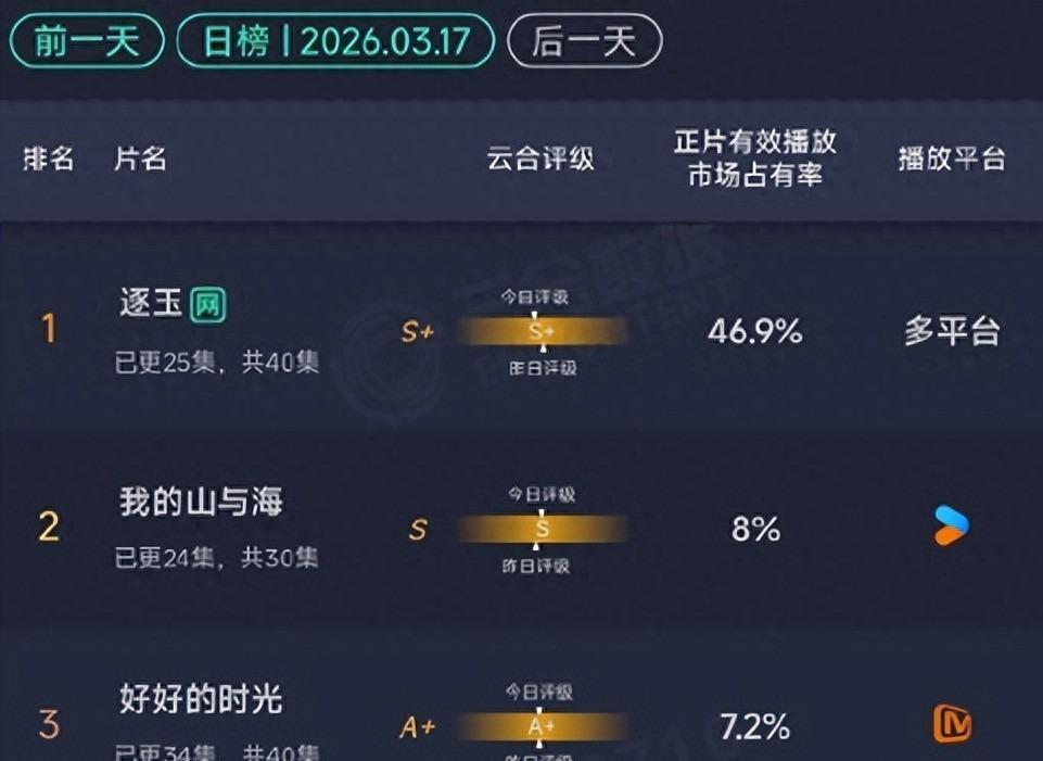 作为央视重磅推出的大剧,《我的山与海》原本备受期待,却在收视与热度上被《逐玉》全面超越。