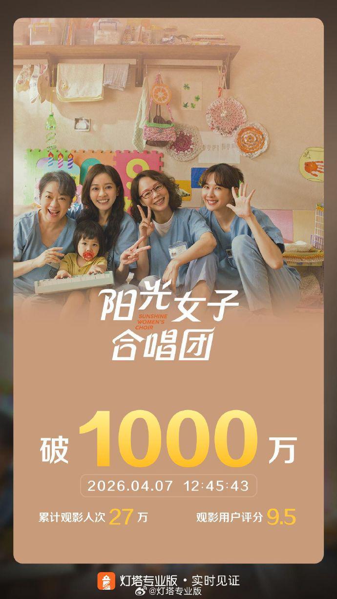 根据灯塔专业版提供的实时票房统计数据,截至4月7日中午12时45分,电影《阳光女子合唱团》的累计总票房已成功突破1000万元大关。