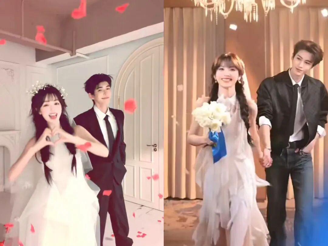 九宫格配图中,前七张是古风剧照,第八张却惊现现代婚纱造型。