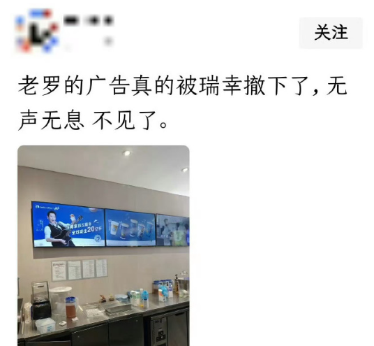 近日,有细心网友发现,瑞幸线下门店原本随处可见的罗永浩代言广告,不知何时已悄然消失。