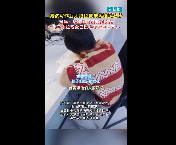 男孩写作业拖拉被送派出所,效率大提升:一小时完成一天作业量