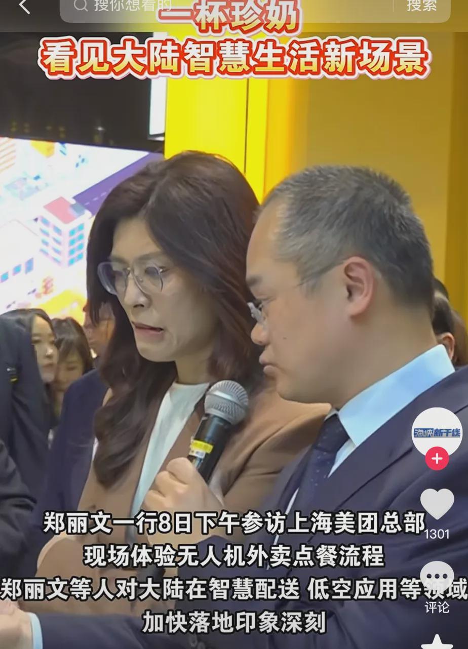 在美团上海总部,创始人王兴亲自出面接待,并亲自导览,安排郑丽文亲身体验了无人机配送奶茶的便捷服务,让她亲身感受到了大陆科技的飞速发展。