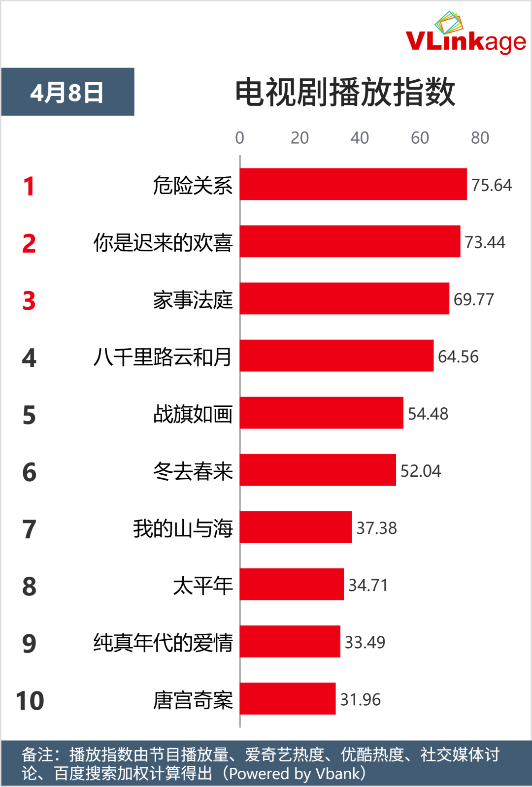 Vlinkage指数解析 | 4月8日剧综网播市场全景图