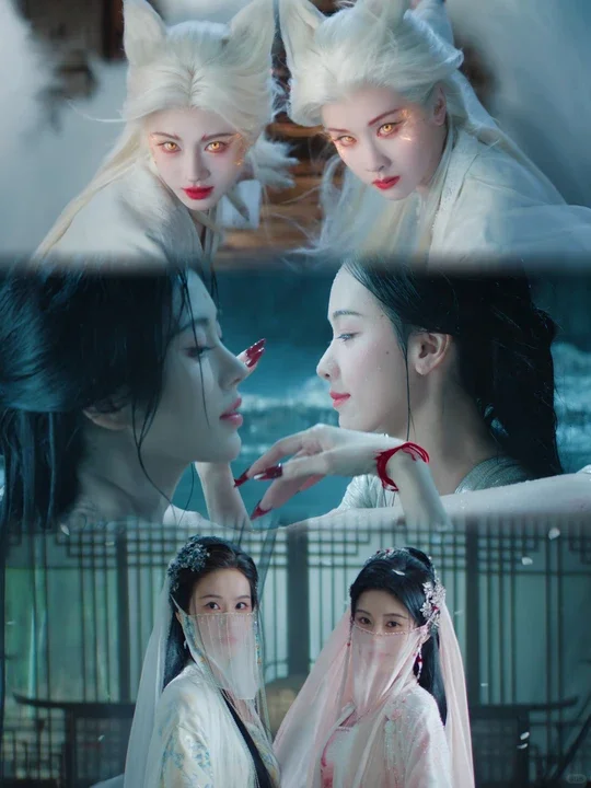 这对性格、动机截然相反的狐妖姐妹,在剧中构成了鲜明的对比。她们截然不同的美,却在同框时和谐得如同笔触精妙的双面绣,令人赞叹不已。