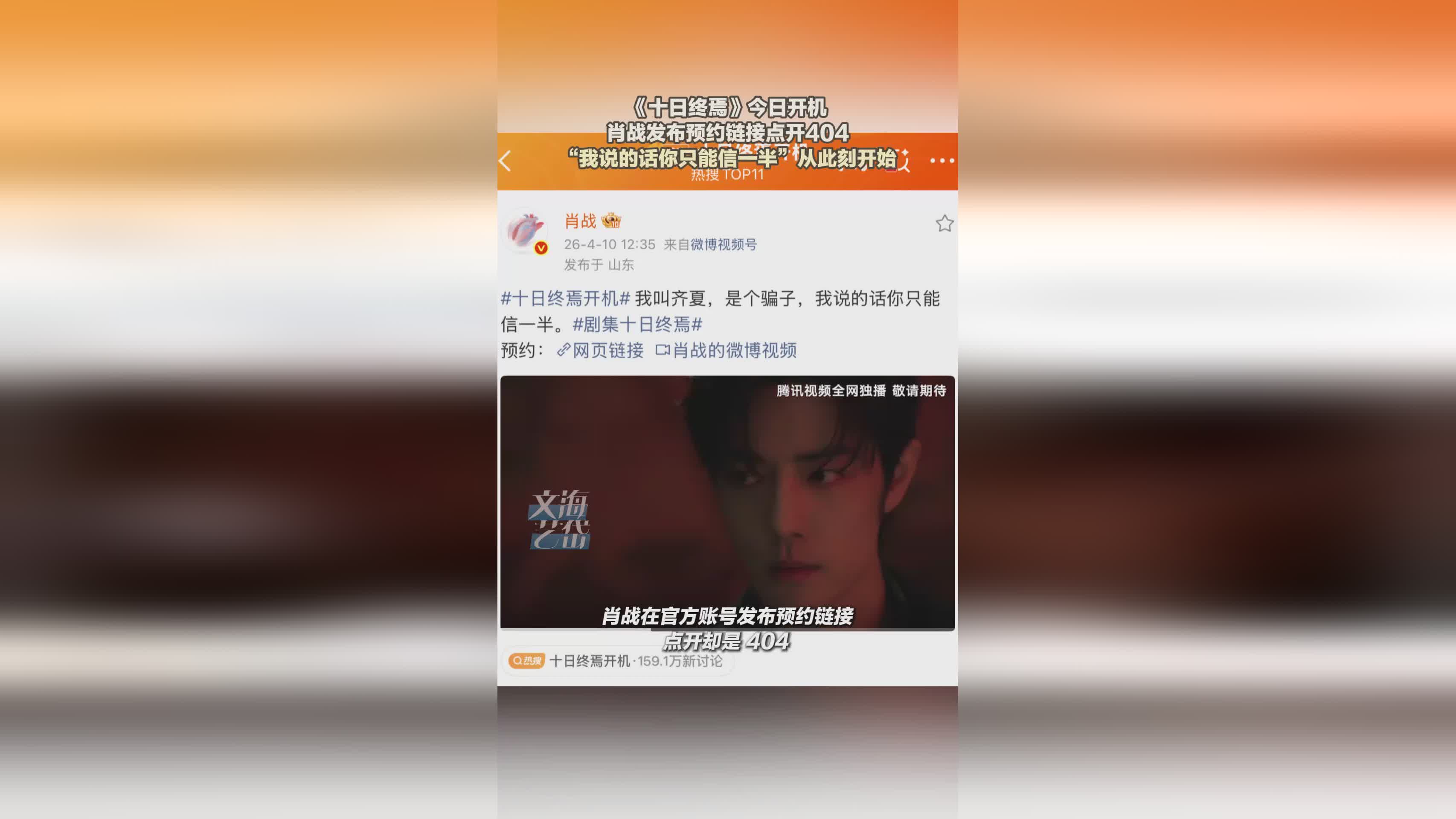 《十日终焉》青岛开机 肖战预约链接404引猜测 悬念从开机就已开始