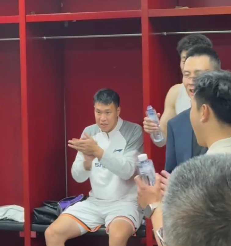 上海队力克北京锁定常规赛冠军,卢伟喜极而泣,更衣室庆祝声震天