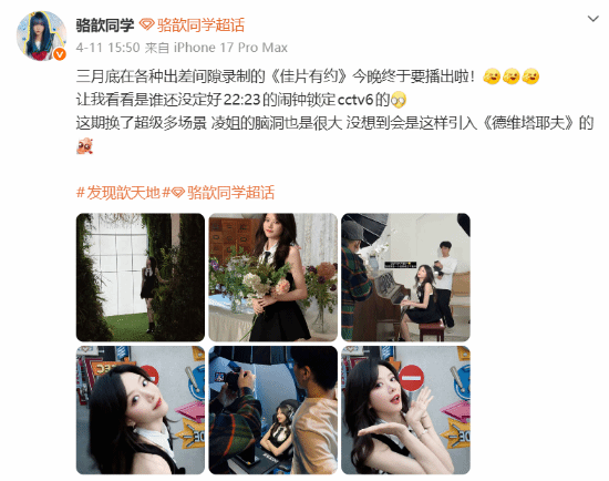 4月11日当天,LPL知名女主持人骆歆通过个人社交平台发布了一则令人瞩目的消息——她成功亮相CCTV6电影频道王牌栏目《佳片有约》,以特别嘉宾身份参与节目录制。这一跨界举动迅速引发电竞圈与影视圈的双重关注。