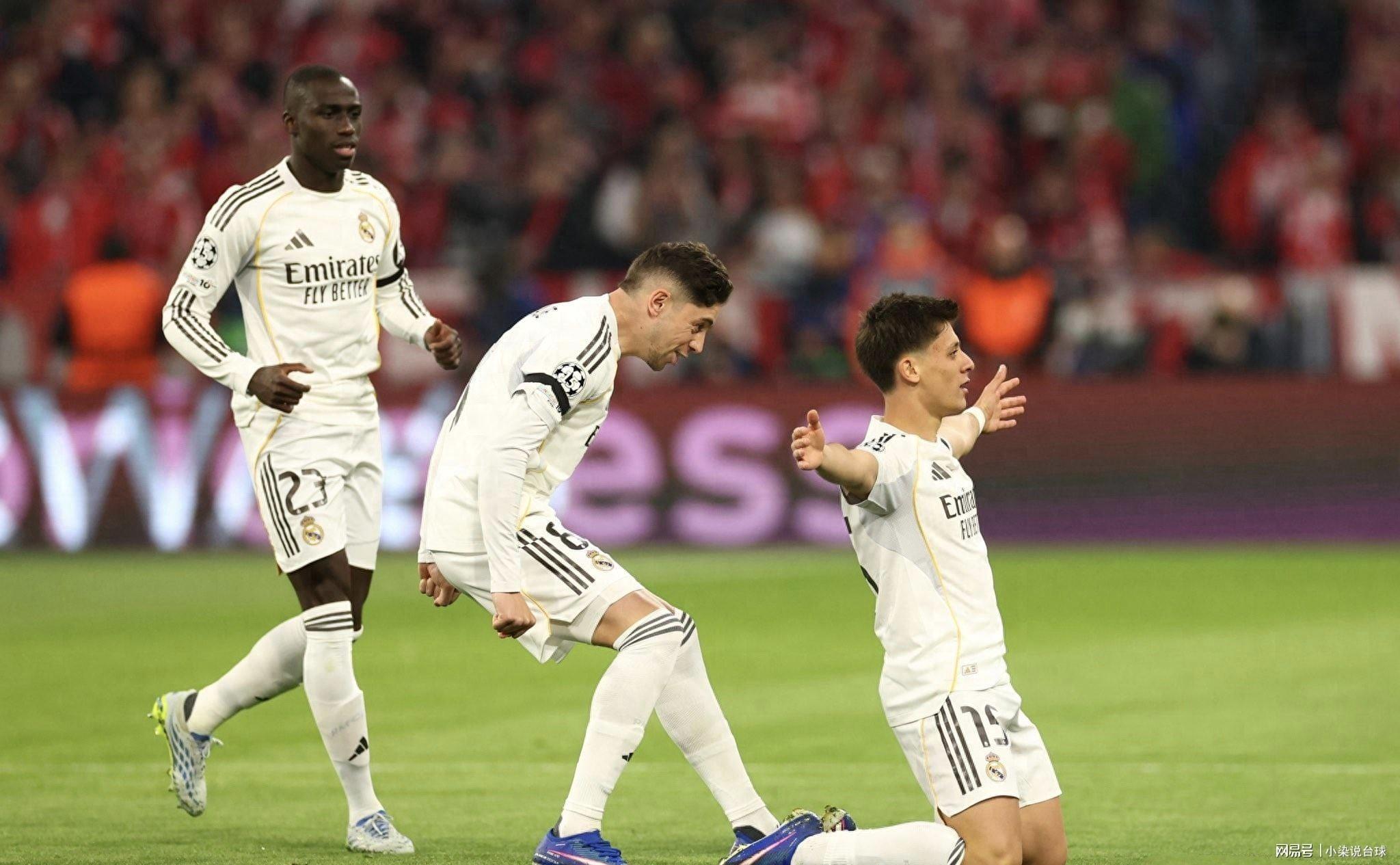 欧冠激战:皇马半场3-2领先拜仁,总比分4-4平局悬念重生