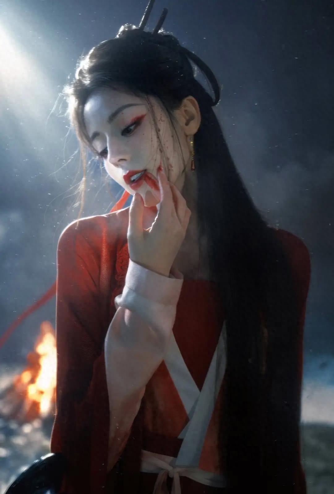 她饰演的贺思慕,作为执掌幽冥四百年的至高鬼王,红衣灼目,白发倾城,额间的细链随动作轻颤,冷冽的气场中透露出令人心碎的孤绝感。她将疯批美艳与清冷疏离这对矛盾特质演绎得淋漓尽致,层次分明。