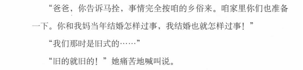 这是一种主动的自我贬低,她将高加林的抛弃,解读为因为自己太旧了,所以被新事物所取代。于是,她用一场旧式婚礼,为自己的“旧”盖棺定论。