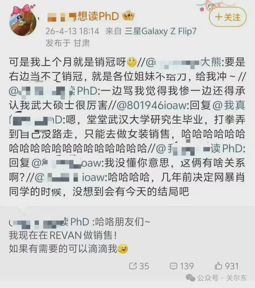 武大知名校友杨某媛最近想必是经历了人生的巨大起伏,从业绩突出的销售冠军到突然失去工作,她的心情可谓是经历了从巅峰到低谷的剧烈变化。