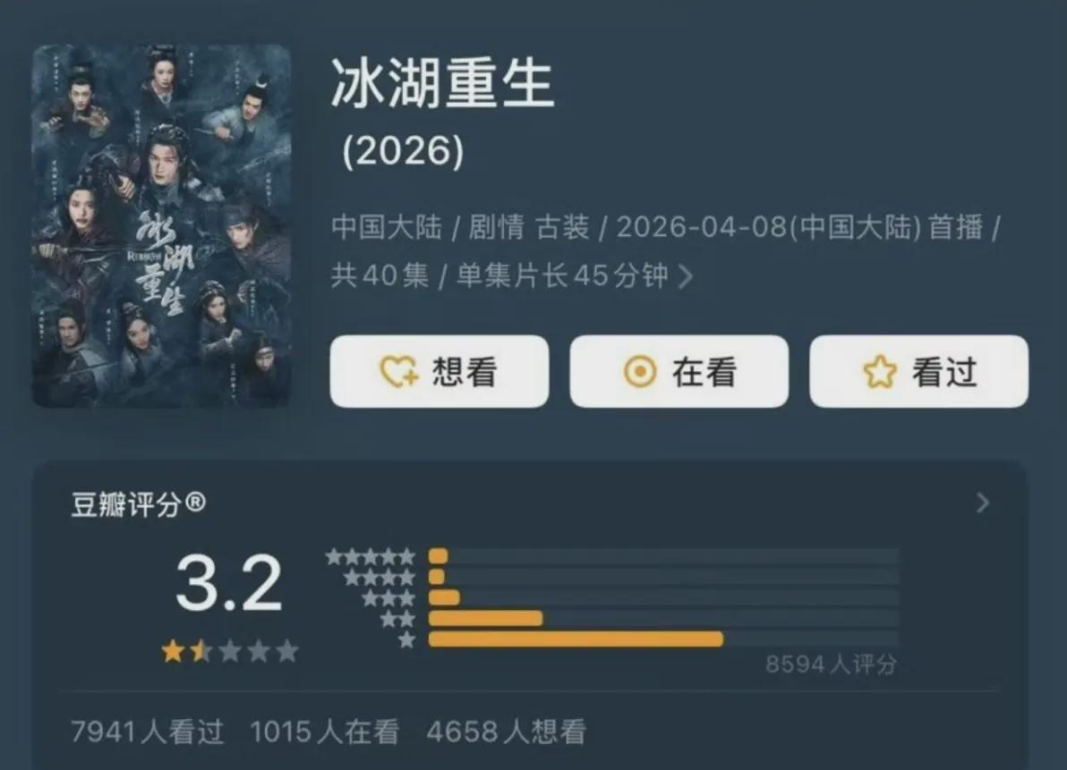 3.2分的开局成绩,在内娱影视史上堪称罕见。其他低分作品通常都是随着时间推移逐渐下滑,而《冰湖重生》却创下开播即低分的纪录。考虑到新用户无法打一分的情况,这个分数已无任何操作空间。业内人士预测,该剧评分很可能继续下滑,跌入2分区间只是时间问题。黄杨钿甜此刻的处境可谓进退两难,尴尬至极。