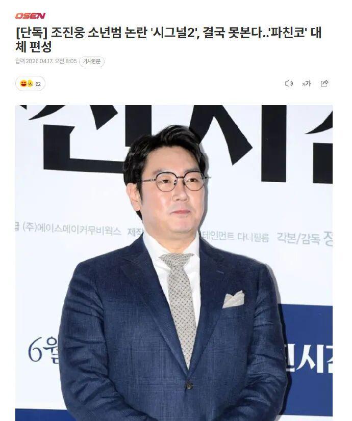据徽声在线从韩国媒体获得的消息,由于主演赵震雄的少年犯罪记录引发了社会的广泛争议,这部备受期待的剧集被排除了在6月及整个夏季的播出计划之外。据悉,原本为《信号2》预留的播出时段,将由Apple TV+的热门剧集《柏青哥》第一季填补。
