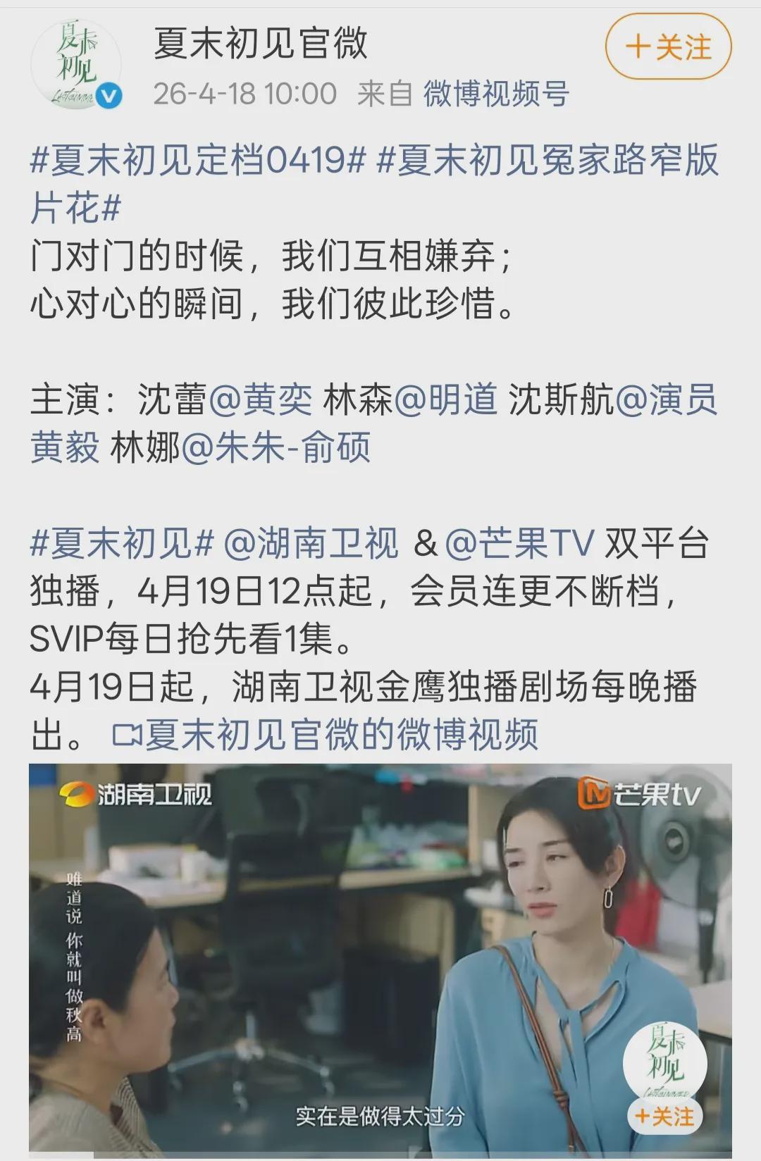 当然,也并非所有人都对这部剧持悲观态度。有网友认为,这种狗血又温情的剧情正好契合中老年观众的口味。毕竟,湖南卫视在下沉市场的基础一直很好,之前就有不少看似老套的中年偶像剧靠着狗血冲突拿下了高收视。就像当年刘涛、林峯主演的《星辰大海》一样,开播前被吐槽油腻不堪,但开播后收视率却一路逆袭。说不定,《夏末初见》也能复制这一路径,成为下一匹黑马。