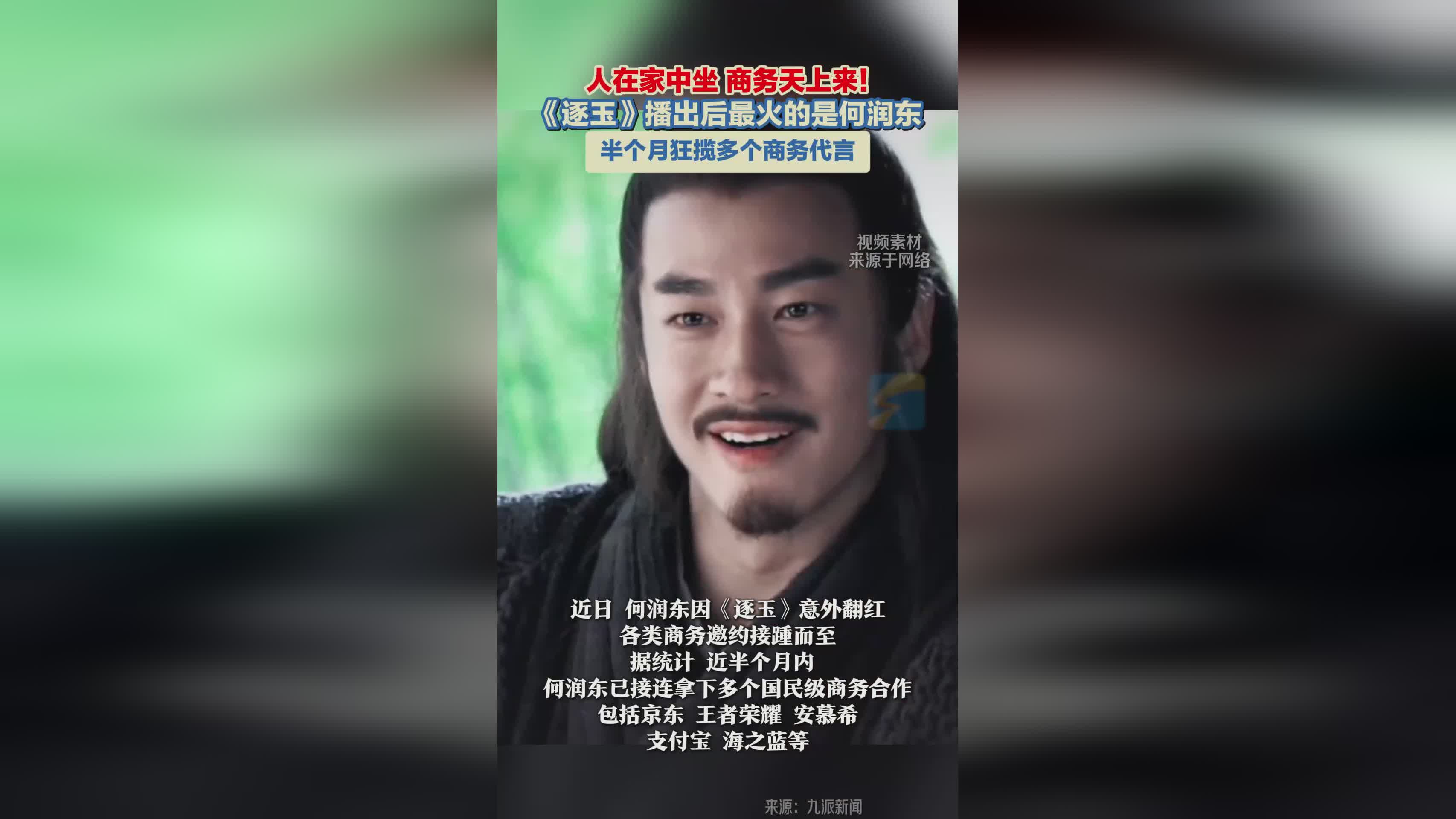 《逐玉》热播引爆何润东商务热潮,半月内狂揽多个国民品牌代言