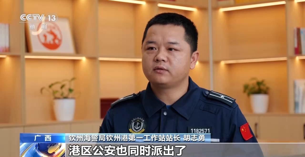钦州海警局钦州港第一工作站站长 胡志勇:我们迅速出动了执法艇,港区公安也同时派出执法艇和派出所民警,对岸线进行了同步排查。