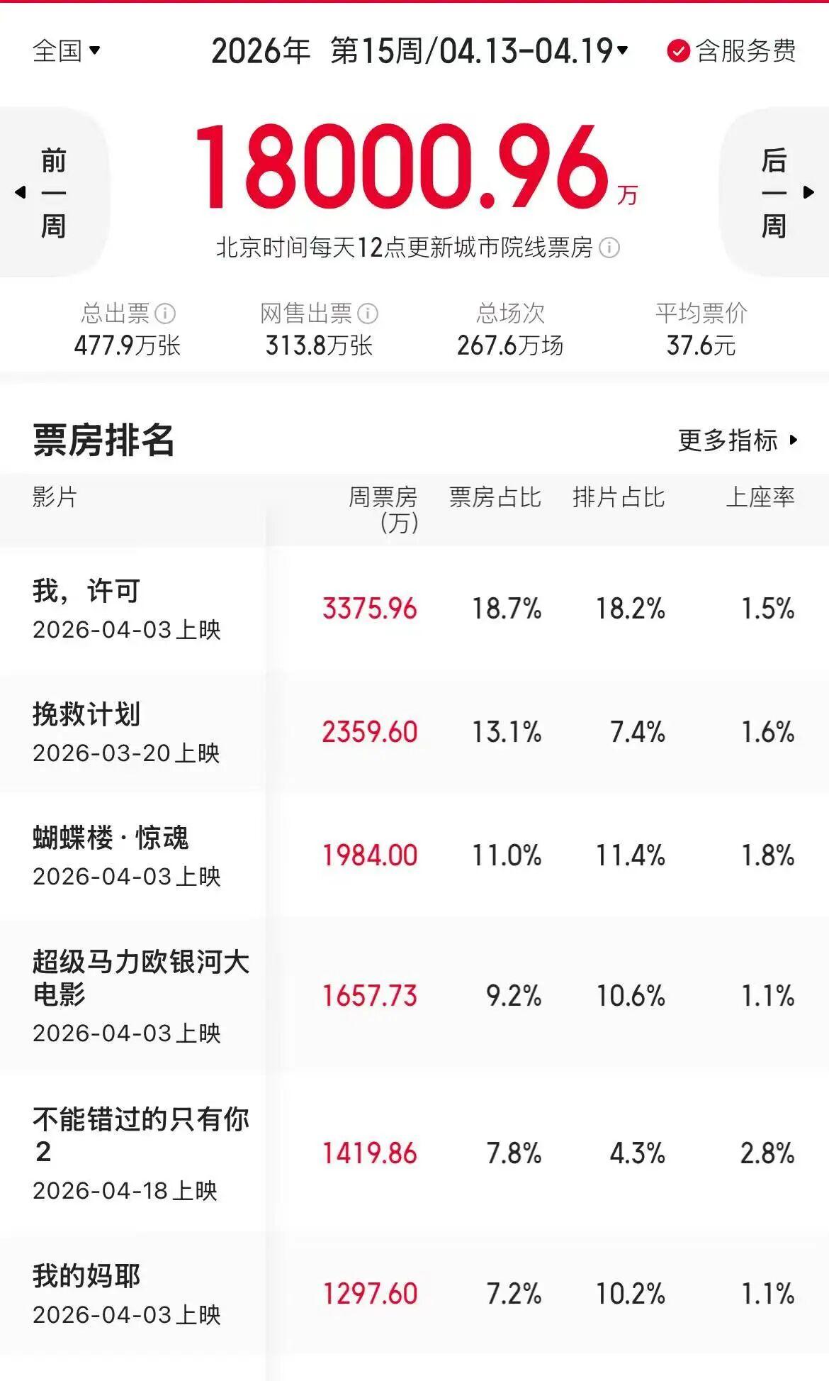 看看上周的院线片表现,票房最高的《我,许可》也仅勉强突破3000万,其他影片更是难以言表,整体市场状况令人堪忧。
