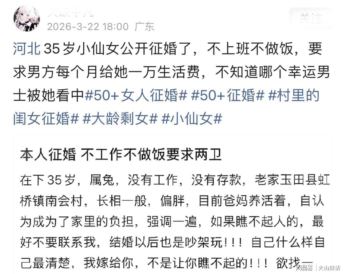 河北35岁女子征婚引争议:不工作不做饭要求月入过万,折射当代婚恋困境
