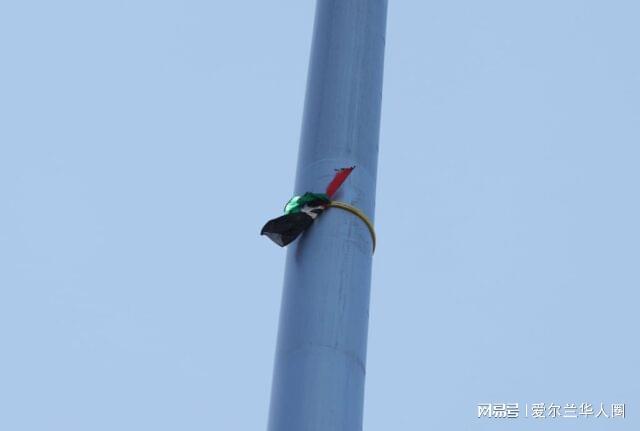 据《爱尔兰时报》深入报道,这面旗帜的“安家”过程颇为神秘。去年9月,一位不知名的“空中飞人”利用无人机,巧妙地在柱子顶端附近悬挂起了这面旗帜,位置之刁钻,令人叹为观止。